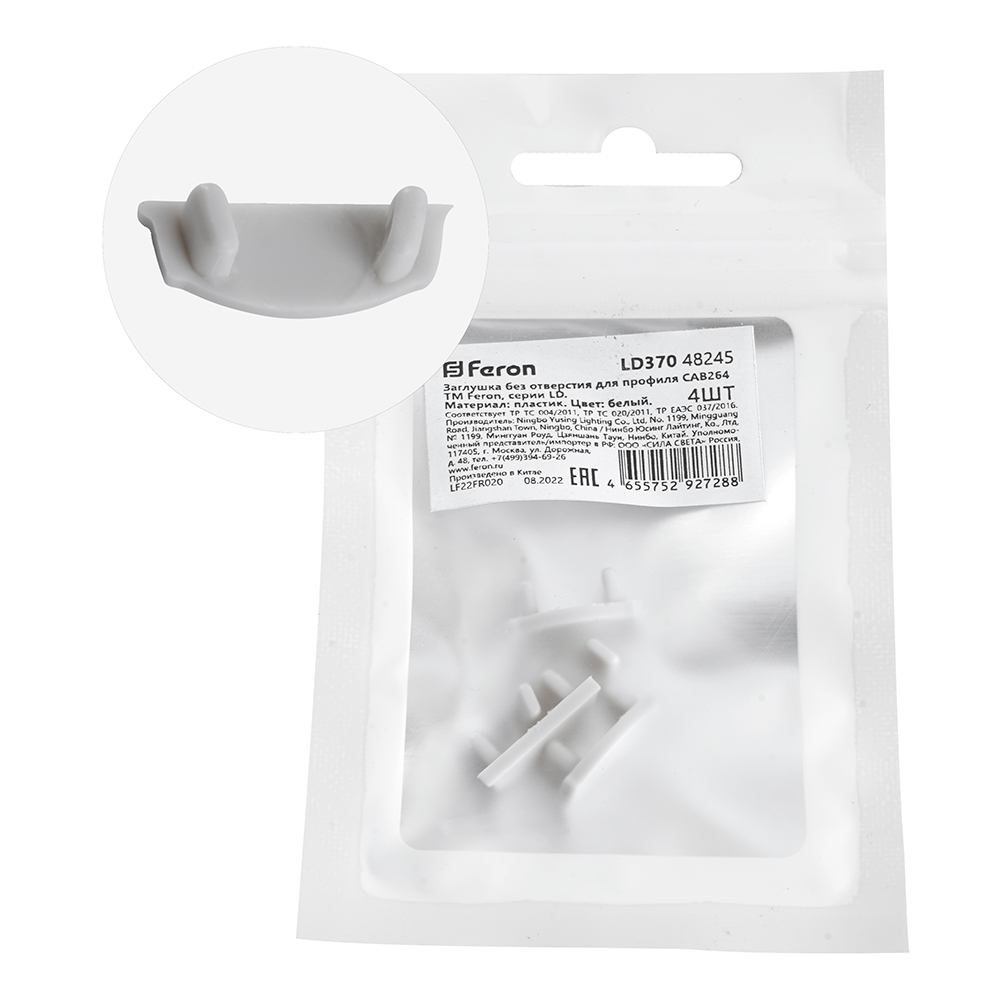 Заглушка для профиля FERON LD370 «без отверстия», цвет белый, в комплекте 4 шт, 15*5*6мм
