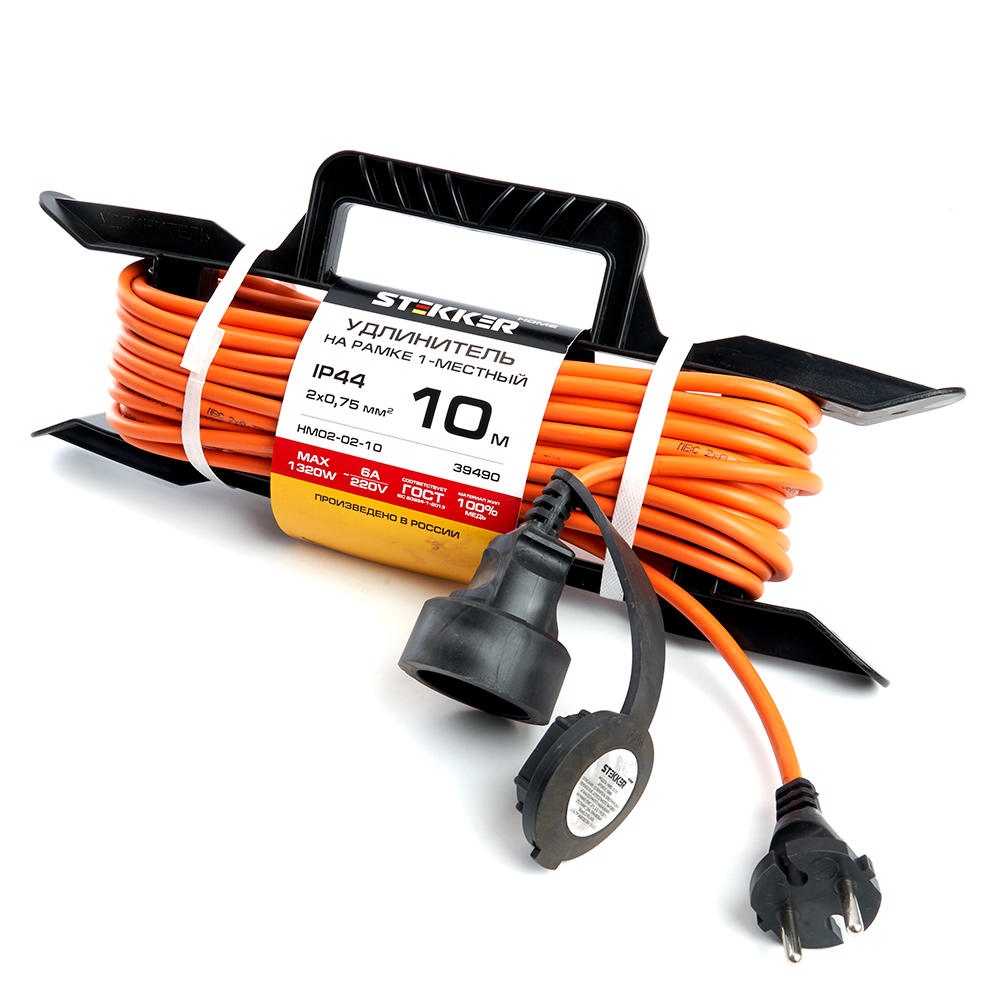 Удлинители STEKKER HM02-02-10, серия Home, цвет оранжевый, длина 10 м, количество розеток 1, сталь, сечение кабеля 0.75 мм2, тип кабеля ПВС, материал кабеля медь, ток 10А, напряжение 220В, максимальная нагрузка 2200Вт, тип вилки - прямая. Диапазон рабочих температур +1..+35°C, степень защиты IP20, класс защиты от поражения эл. током 2, размеры изделия 398*165*155. Гарантия 1 год.