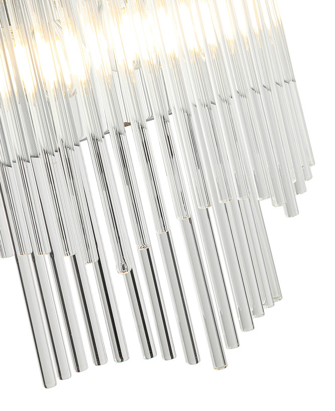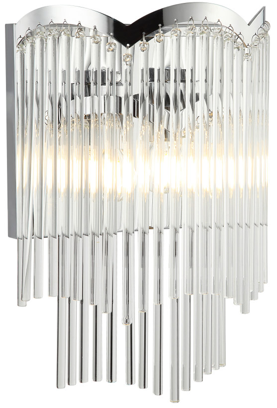 Светильник настенный из коллекции Seauty / Сьюти выполнен из металла, гальванизированного в цвет хрома, и декорирован прозрачными стеклянными трубочками. Премиальное качество и неповторимыи? дизаи?н светильников идеально подои?дут в современные и дизайнерские интерьеры.