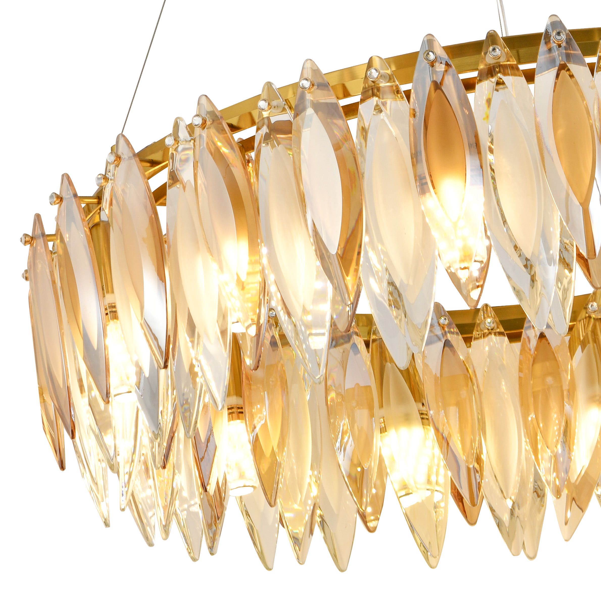 Люстра подвесная из коллекции New Ton / Нью Тон выполнена из металла, гальванизированного в цвет бронзы, и декорирована комбинацией прозрачного и янтарного хрусталя вытянутой формы. Премиальное качество хрусталя высшей категории и неповторимый дизайн светильника идеально подойдут как в классические, так и современные интерьеры. Из данной коллекции светильников можно сделать индивидуальный заказ любого цвета и размера.