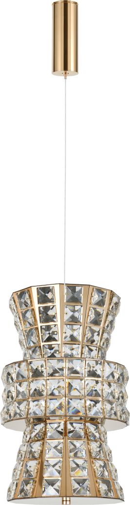 Светильник подвесной эксклюзивной коллекции Karnelli / Карнелли выполнен из нержавеющей стали золотого цвета и декорирован текстурным хрусталем высшей категории. Модель комплектуется пультом дистанционного управления 2,4G и драйвером высокого качества европейского стандарта T?V, обеспечивающим переключение трех режимов световой температуры и диммирование. Премиальное качество и неповторимыи? дизаи?н светильников идеально подои?дут как в классические, так и современные дизайнерские интерьеры. Из данной коллекции светильников можно сделать индивидуальный заказ любого цвета и размера.