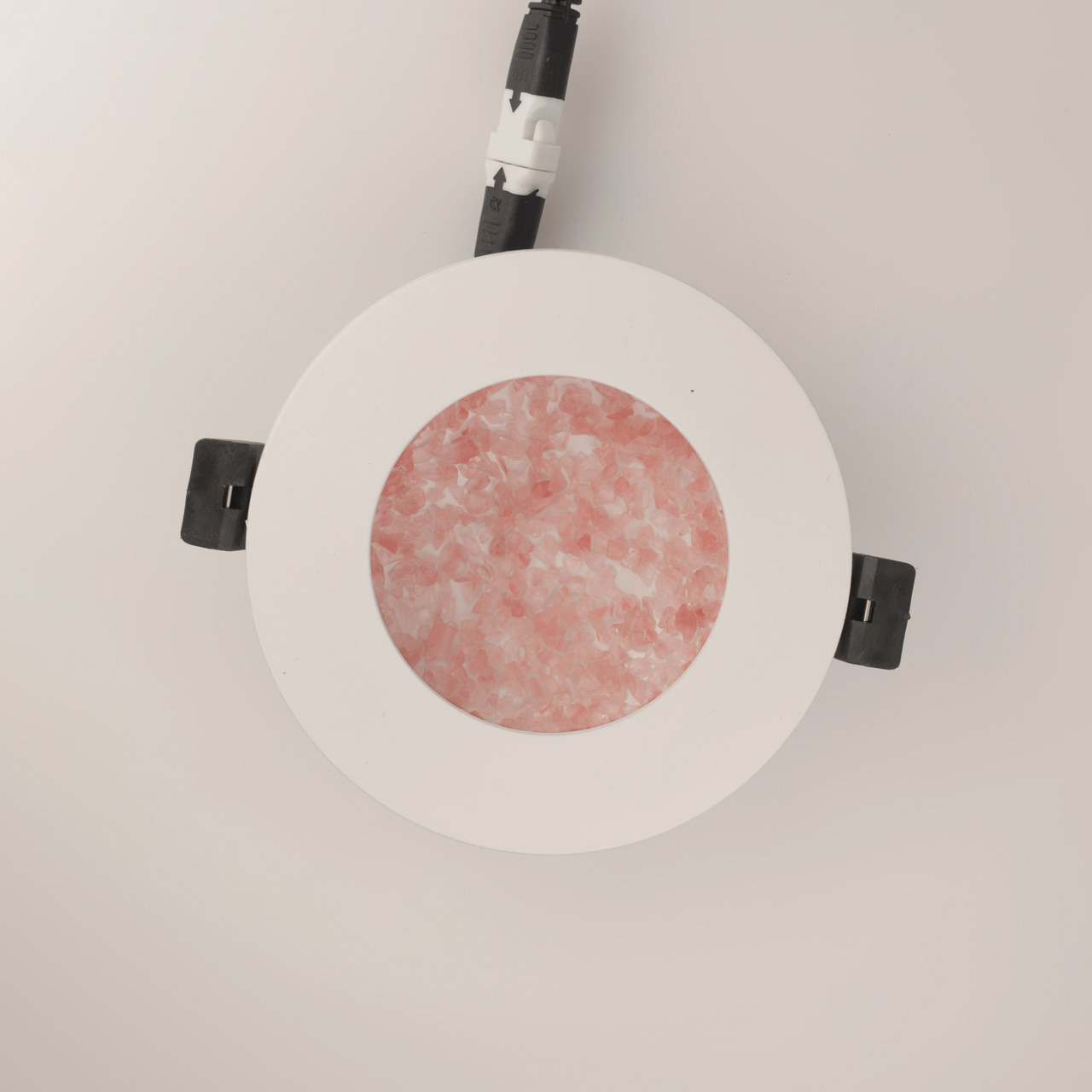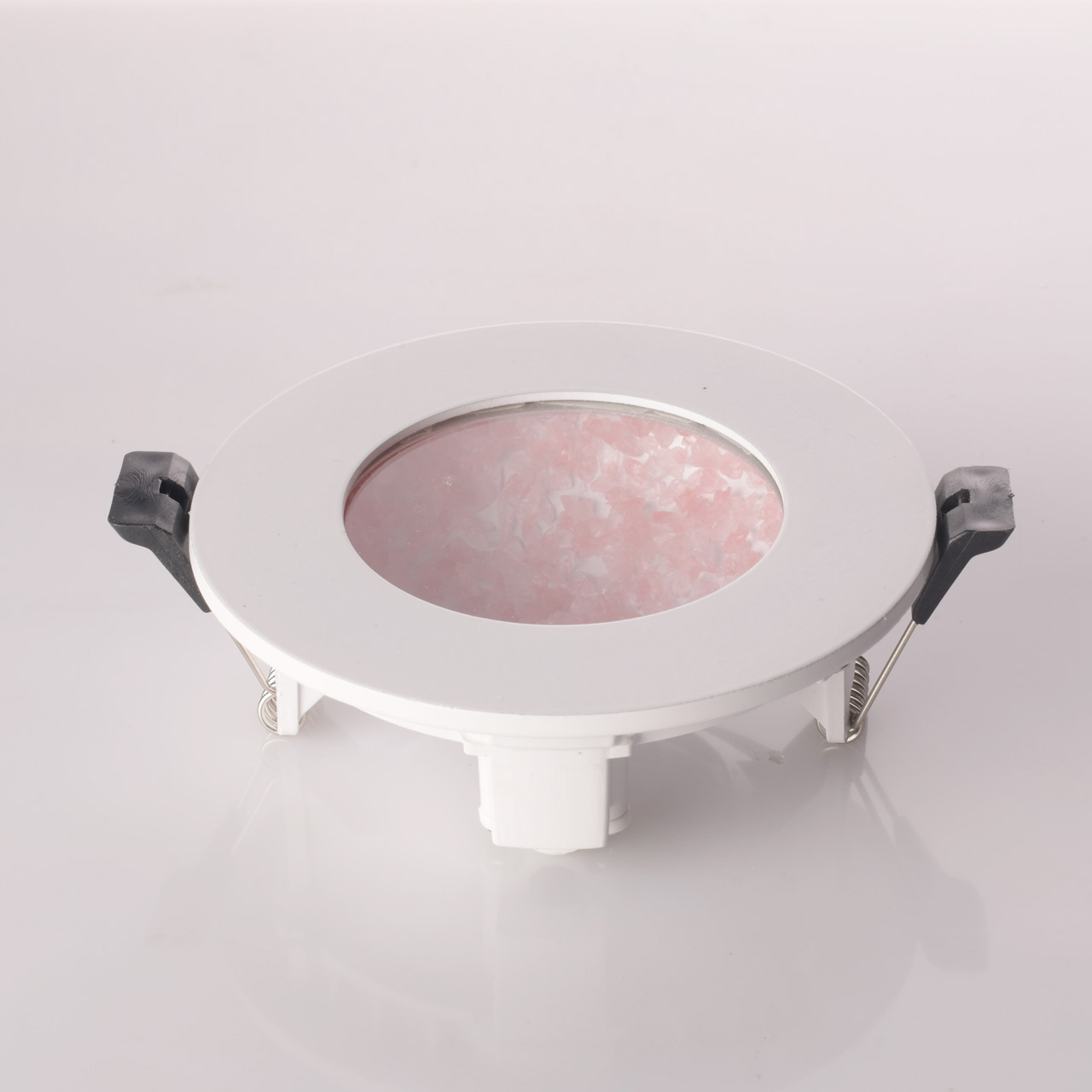 Основание светильника выполнено из сплава алюминия и окрашено в белый цвет.Светодиодные источники света типа SMD Strip закрыты прозрачным стеклом. Цветная стеклянная крошка.